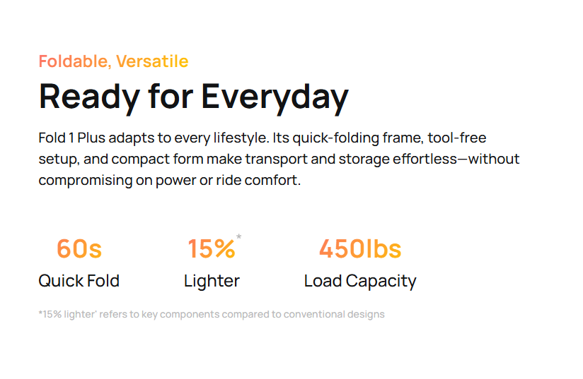 The new gold standard in folding ebikes. Meet Fold 1 Plus – ultra compact for easy storage, yet ruggedly versatile with class-leading comfort. Your next best friend for RV trips, daily commutes, and so much more.